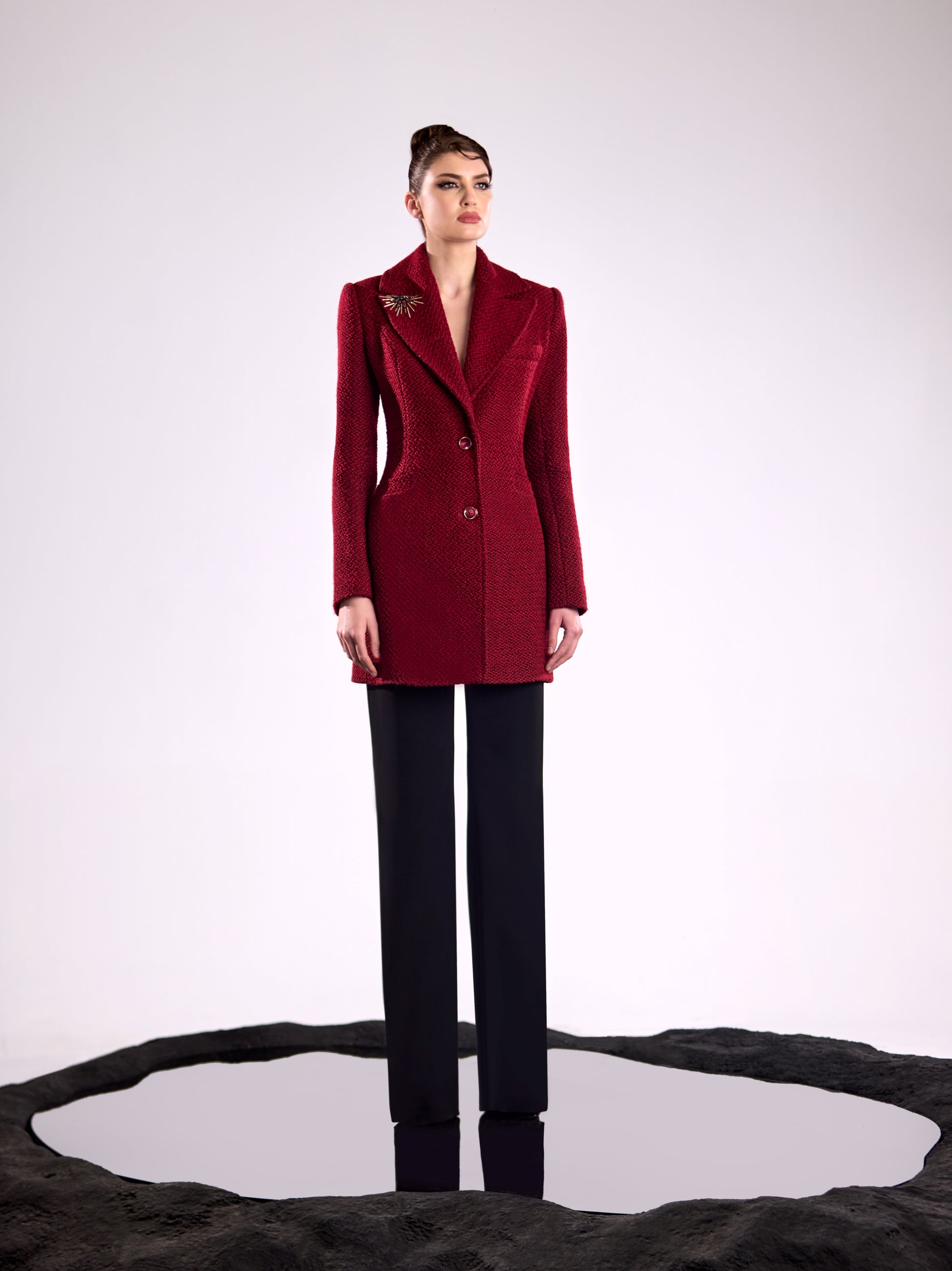 Elevate your style with Carris by Hannah, a luxurious embroidered jacket and pant set. Expertly crafted from the highest quality broadcloth and crepe, experience the ultimate in elegance and sophistication. Perfect for any occasion, make a statement with Carris.
