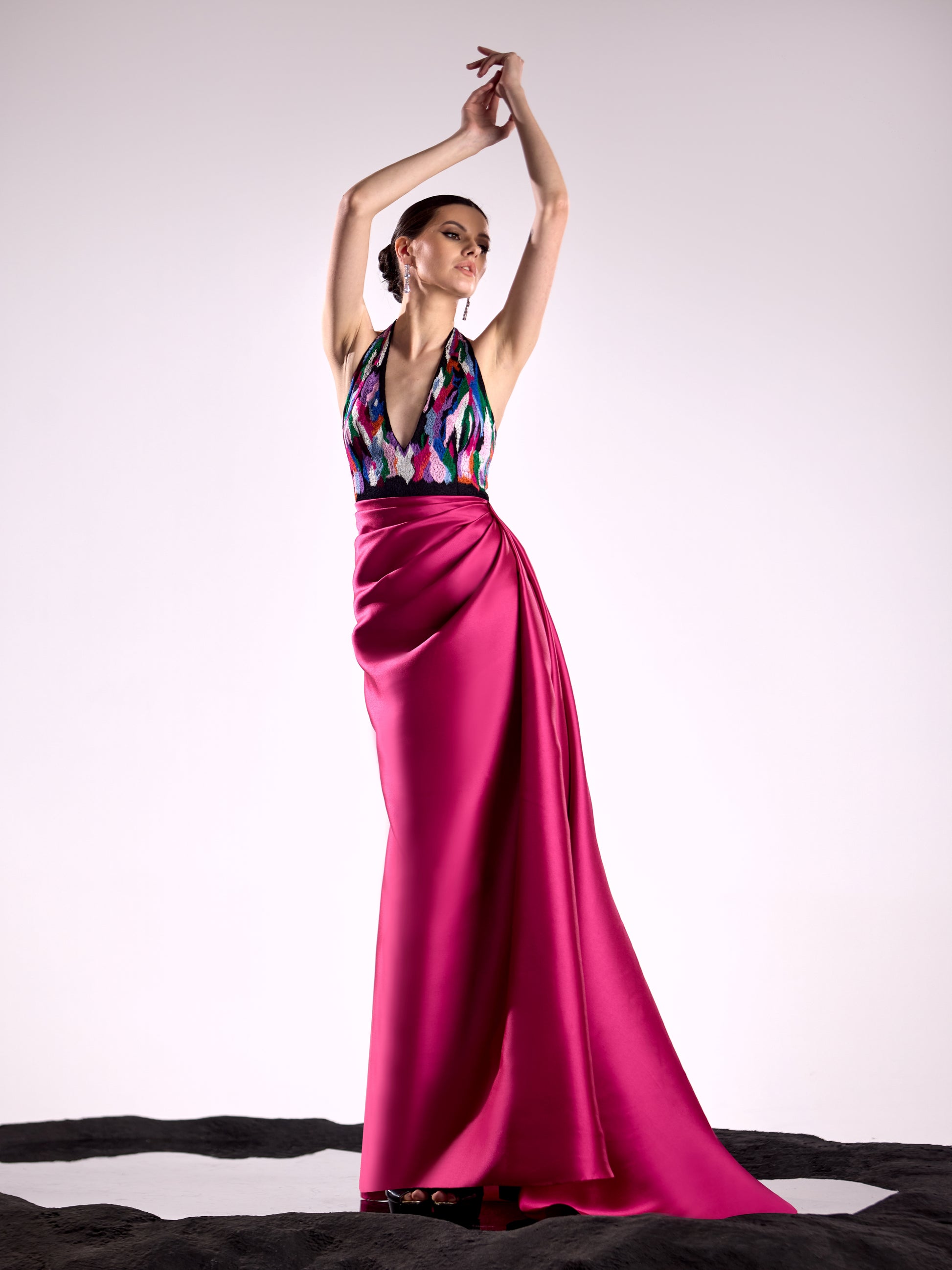 Crafted from luxurious Mikado fabrics and adorned with intricate silk embroidery, Dancing-Queen is the epitome of elegance. This dress boasts a high level of quality and craftsmanship, making it a must-have for any fashion-forward individual. Elevate your style with Dancing-Queen.